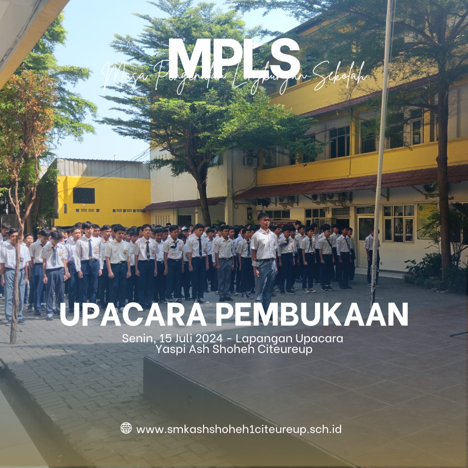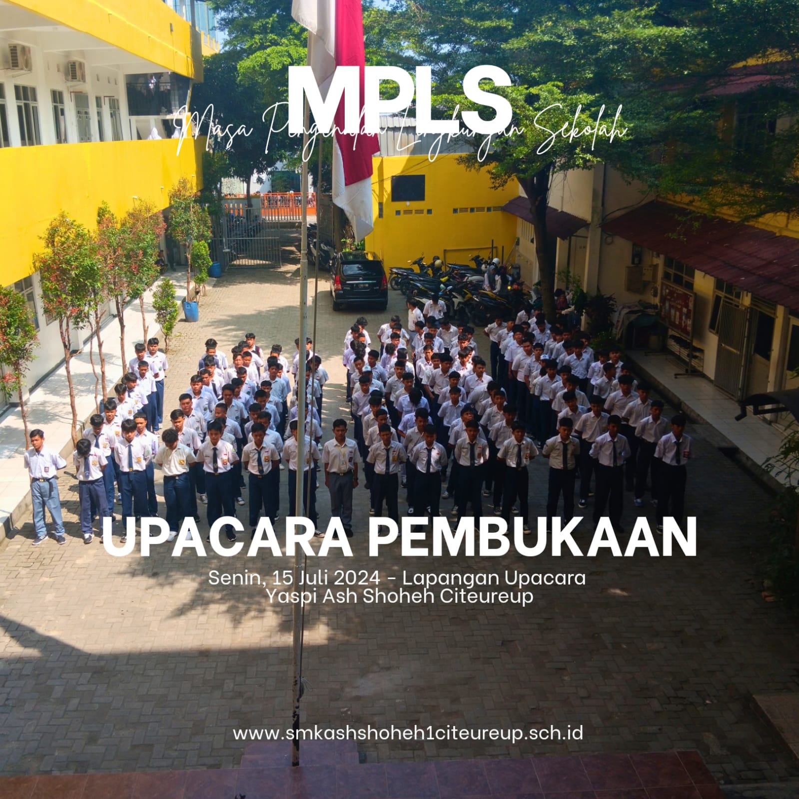 MPLS ( Masa Pengenalan Lingkungan Sekolah ) SMK Ash Shoheh 1 Citeureup hari pertama Senin, 15 Juli 2024 di Gedung Yaspi Ash Shoheh Citeureup